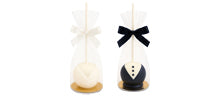 Auch geschmacklich überzeugen unsere Hochzeits-Cake-Pops: Die Braut-Variante begeistert mit einem feinen Vanille-Geschmack, während die Bräutigam-Variante mit schokoladiger Füllung punktet. Jeder Cake-Pop ist einzeln in durchsichtiger Folie verpackt und wird mit einer passenden Schleife verziert: weiß für die Braut, schwarz für den Bräutigam. Egal ob als Highlight auf dem Sweet Table, als Gastgeschenk oder als kleines Dankeschön für Deine Hochzeitsgäste – diese Cake-Pops sind ein echter Hingucker und sorgen garantiert für Begeisterung. Jetzt online bestellen und Deine Feier mit süßen Details noch unvergesslicher machen!